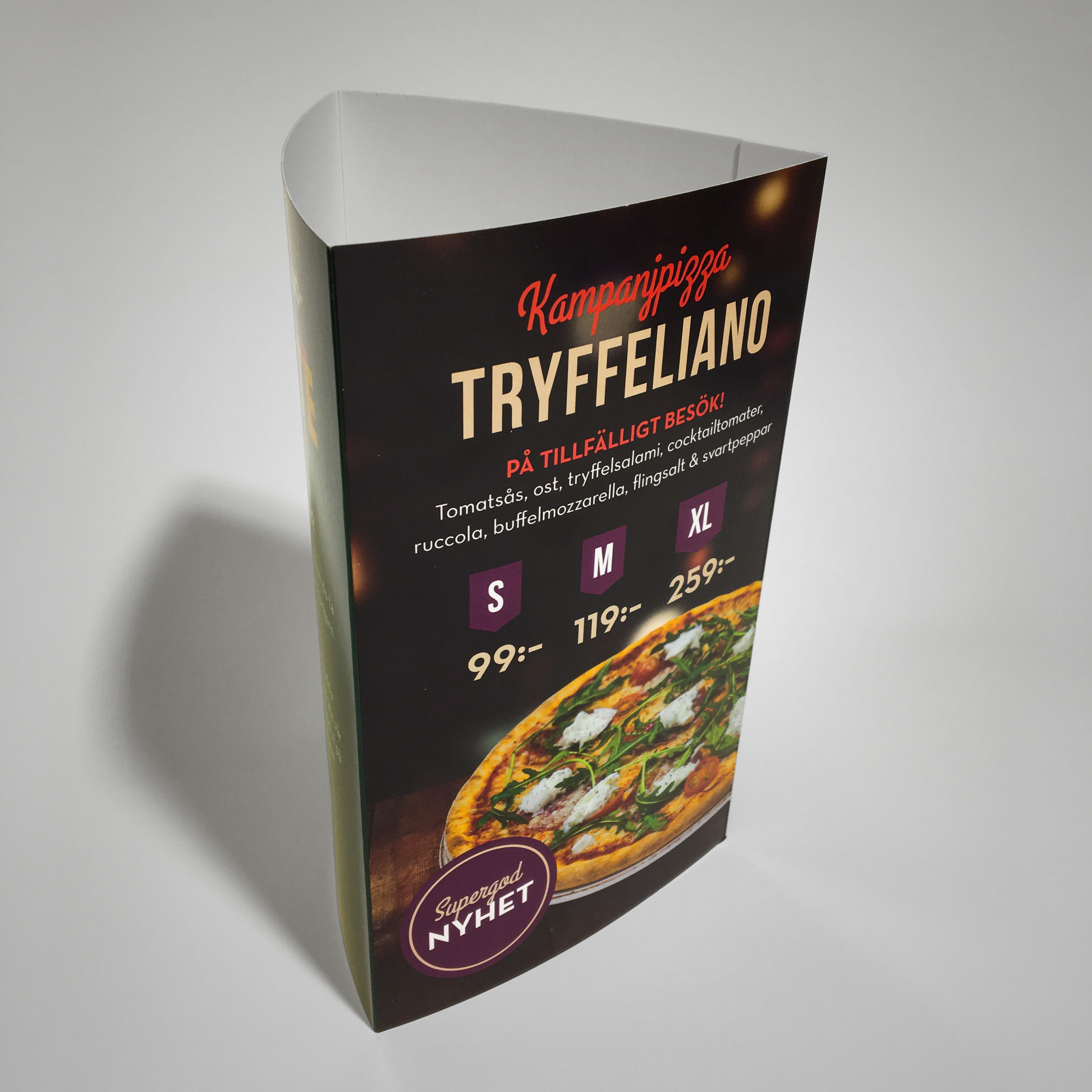 Visst blir man sugen när man ser I love pizza’s nytryckta bordstalare. Ett enkelt och kostnadseffektivt sätt att få merförsäljning och nå ut med budskap på borden.