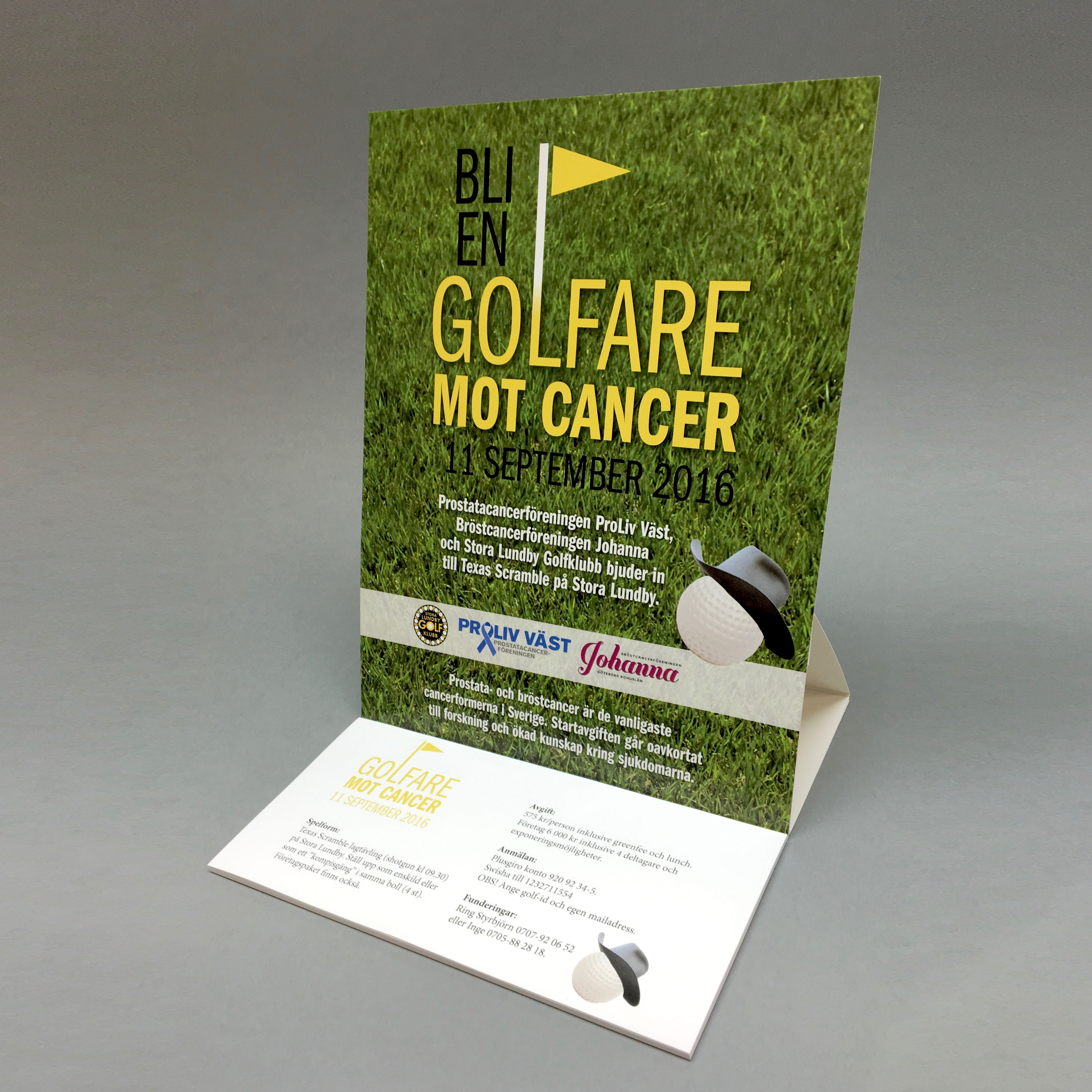 Prostatacancerföreningen Proliv och bröstcancerföreningen Johanna anordnar golftävling på Stora Lundby 11 sep 2016. Duplica printade affischer skyltar och anmälningstalonger.