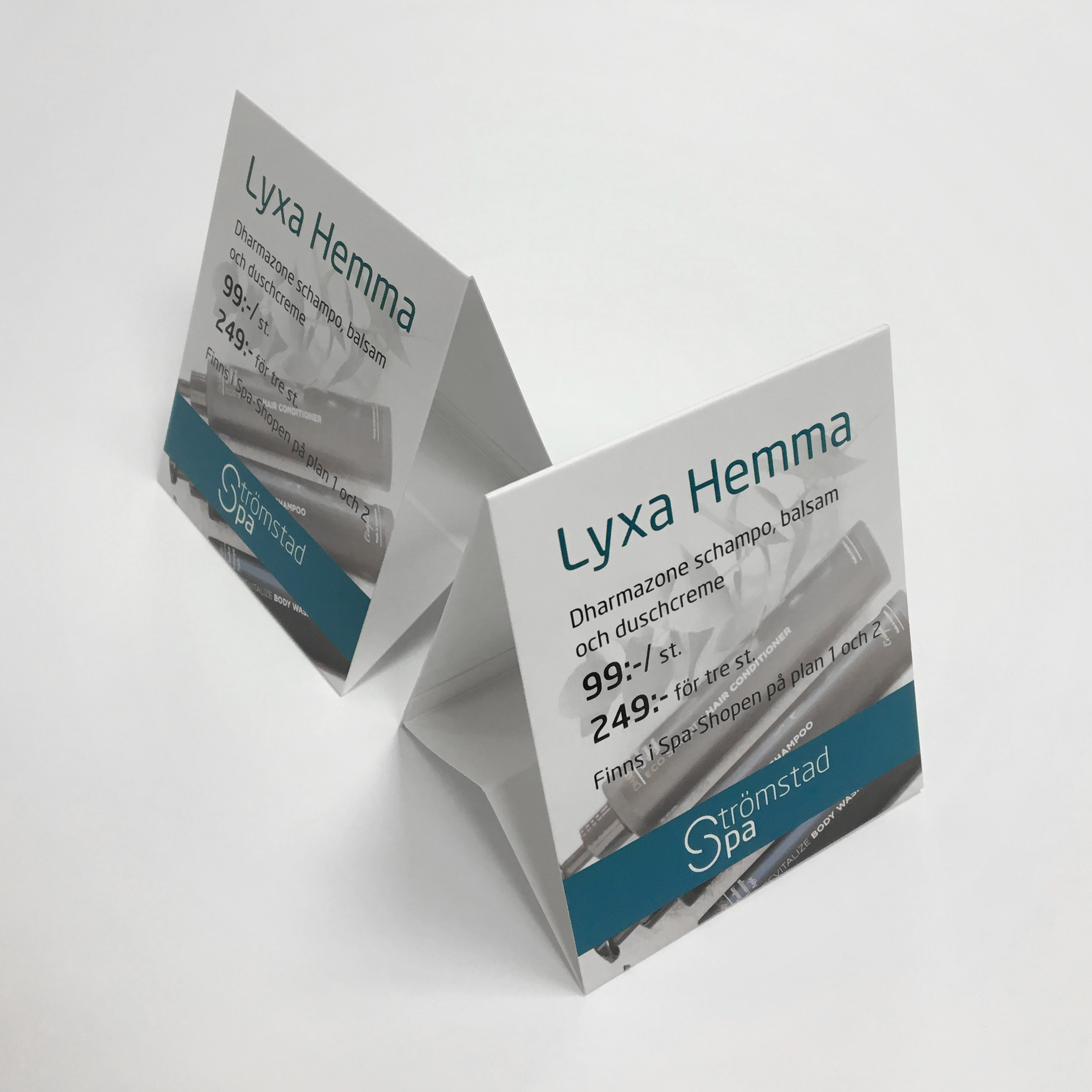 Vi har gjort dessa små, men stadiga, bordsryttare åt Strömstad Spa. Lockar gästerna till inköp.