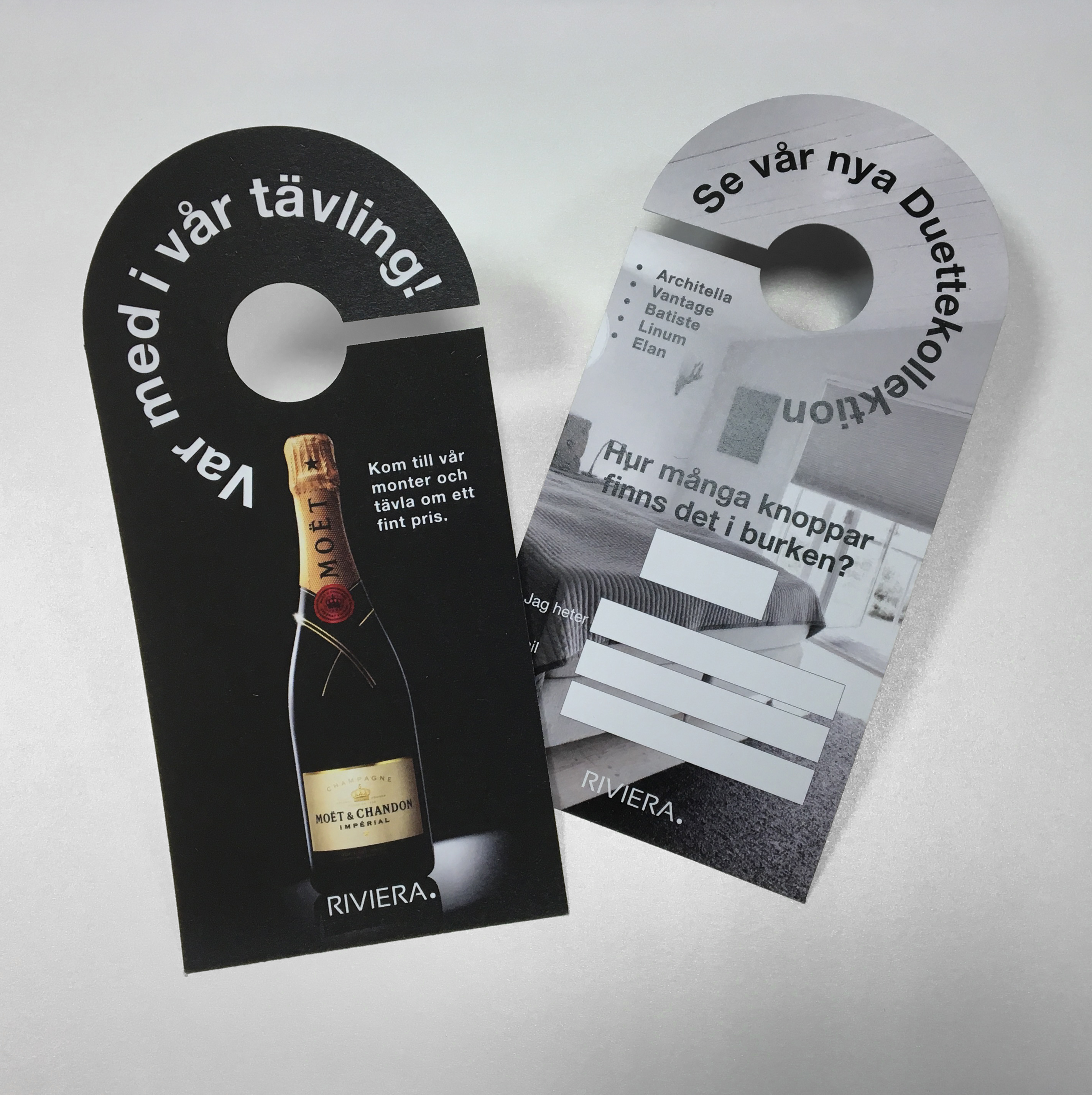 Kampanjhängare stansad i papper. Befintlig stansform som kan användas i många syften.
